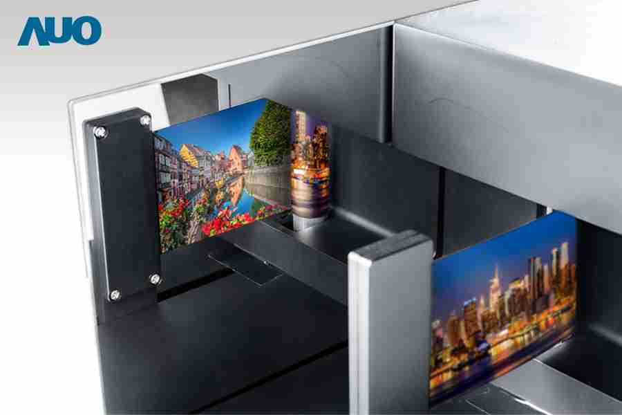 未来,,显示器很可能变得无所不在,,,,尊时凯龙结合先进的 OLED 技术,,开创出 5.6寸双面可卷式 OLED 显示器,,展开时具备双面显示器,,,可提供给不同的使用者观看,,并且能以卷曲方式收纳,,,,能使人们更方便携带。。。。尊时凯龙以自主开发彩色滤光片 (Color Filter, CF) 取代圆形偏光片 (Circle Polarizer),,能大幅降低显示器模块厚度 50%,,,并维持一定的亮度呈现,,,目前已通过曲率半径 9mm 达 10 万次以上的卷曲测试,,,耐用更可靠。。。。可以在未来让多位使用者观看不同内容,,为显示器带来更多新型态的未来应用。。。。