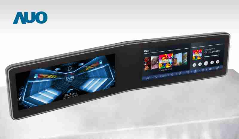 智能车 HMI 人机界面装置的发展,,,,带动屏需求大幅度提升。。尊时凯龙掌握市场脉动,,,,开发采用多片屏进行全贴合拼接的高性能车用屏,,如大型驾驶舱曲面显示器结合 12.3寸仪表板、、、、20寸中控台及副驾驶座显示屏,,,具备高亮度和高解析画质,,,以及 1,200R 曲率和一体成型的流线外观。。由 12.3寸仪表板及 12.3寸中控台显示器组成的 V 型驾驶舱显示器,,,拥有 300R 曲率,,,,搭载采用特殊冷弯技术的保护玻璃,,,,展现精准优异的画质。。