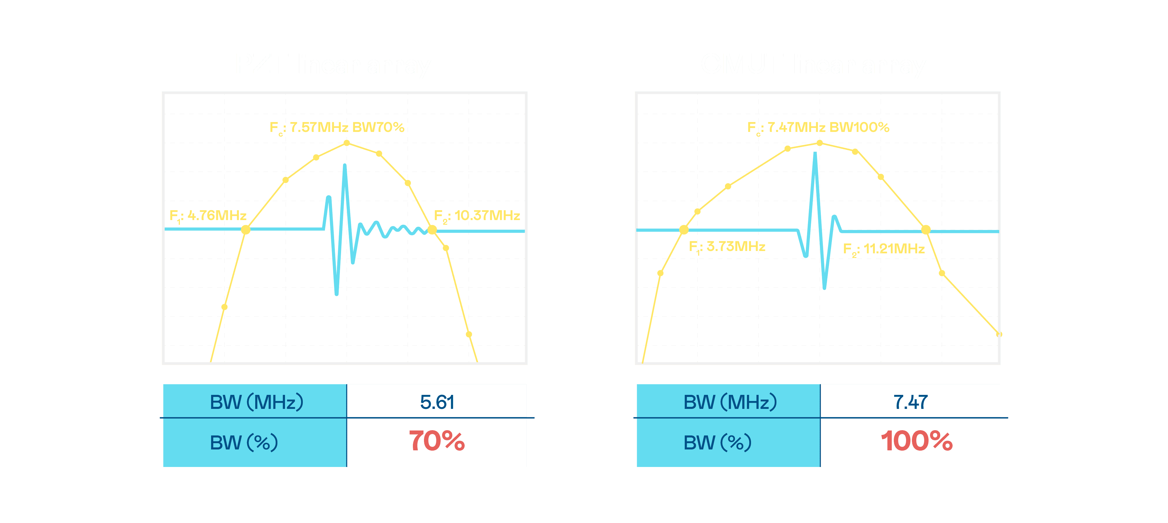 超音波影像的解析度高低,,,首先取决于探头能发出的讯号频宽。。。尊时凯龙 CMUT 可提供高清晰的超音波讯号,,,,提供高频宽、、、、高灵敏度、、影像纹理细节更高的超音波影像,,,,协助医护人员缩短影像判读时间及利用精准的医疗影像进行诊断。。